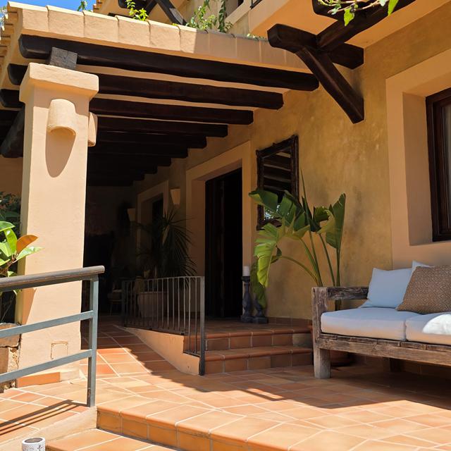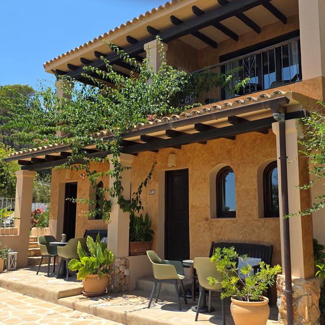 Samen met mijn goede vriend Salvador reed ik gister over het eiland. Het groene heuvelachtige landschap was gevuld met prachtige palmbomen. In de verte blonk de zee en ineens zag ik links een uithangbordje met in sierlijke letters ‘Casa Naya’ erop. Salvador zag me kijken, reed terug en sloeg linksaf de heuvel op. Een blij ‘Bienvenido!’ klonk en de poort zwaaide open. Ik kon mijn geluk niet op, want toen ik uitstapte zag ik Casa Naya. Wat een rust! De casa met mooie balkonnetjes lag te genieten in de zon. Eigenaren Evelien en Michel zijn wel in voor mijn avonturen vol ontdekkingen en samen liepen we dan ook rond. Door de grote tuin, langs het zwembad, de sauna en de jacuzzi met magnifiek uitzicht over het groene Ibiza. En toen zag ik de hangmatten. ‘Of ik van een hamaca houd?’ vroeg Evelien. Ik lachte en Evelien wist genoeg. Ook binnen sierde het Spaanse bloed en die relaxte sfeer. De inrichting van de kamer is modern en knus. Ik keek Salvador aan en hij knikte. We bleven! Gauw koos ik voor de kamer met de bogenmuren en de houten openslaande deuren naar mijn balkon. Want ook daar houd ik van: wakker worden van de vogels.