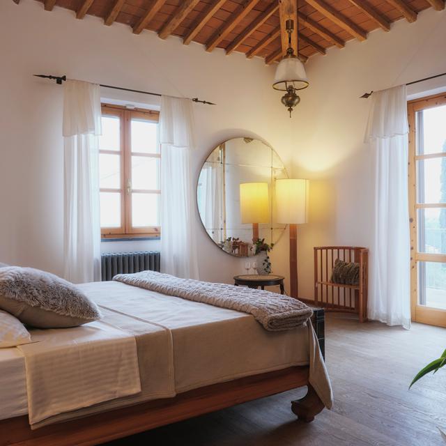 Casal di Peppe is een exclusief, intiem adres met slechts drie ruime suites – elk stijlvol ingericht met artisanale meubels, veel licht en indrukwekkende uitzichten op het Toscaanse landschap. De sfeer is warm, persoonlijk en vol karakter: een ode aan het leven zoals Giovanni en Elisa die leven. De accommodatie ligt rustig, aan een licht glooiende weg, omringd door olijfbomen en mediterrane geuren. Ontbijten doe je buiten, tussen de bloemen, en daarna ben je zo in pittoreske dorpjes als Lari of bij de reusachtige standbeelden van Peccioli. En telkens als je terugkeert, voelt het weer als thuiskomen.