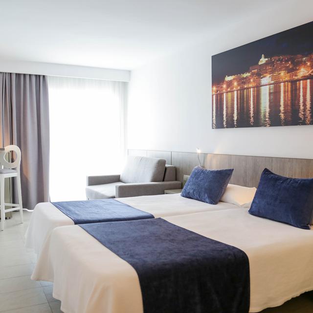 Binnen het hotel vind je volop mogelijkheden om actief te blijven of juist te relaxen. Start je dag in de sportschool of kom tot rust in het wellnesscentrum met spa en sauna. Voor een heerlijke maaltijd kun je terecht in het à-la-carte- of buffetrestaurant, en de snackbar is ideaal voor een snelle bite. Dankzij de gunstige ligging en uitgebreide faciliteiten is dit de ideale uitvalsbasis voor een onvergetelijk verblijf op Ibiza.