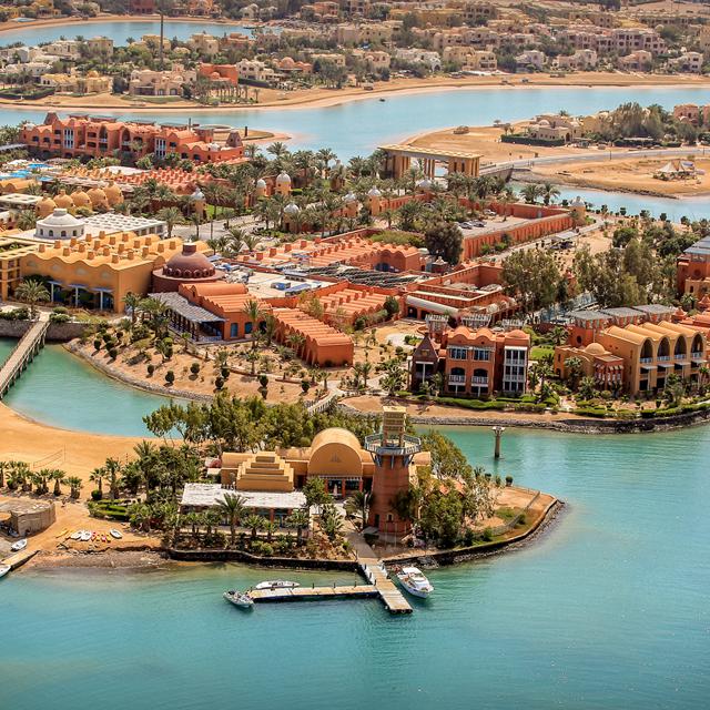 Sheraton Miramar Resort is gebouwd op een droomlocatie in El Gouna: uitgestrekt over negen eilandjes die omringd worden door kristalblauwe lagunes en met elkaar zijn verbonden doormiddel van charmante houtenloopbruggen. Over de eilandjes heen ligt een prachtig aangelegde tuin en op de achtergrond een dramatisch decor van duinbergen. Zo kun je op iedere plek genieten van een verbluffend uitzicht.