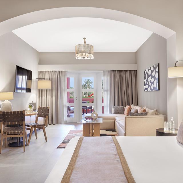 De 268 prachtige kamers hebben een modern interieur met een Oosterse twist. Ze zijn gevestigd in lage gebouwen met twee of drie verdiepingen en zijn gebouwd in Nubische stijl. De comfortabele kamers bieden allemaal een waanzinnig uitzicht: op het zwembad, de tuin, golfbaan of lagune.