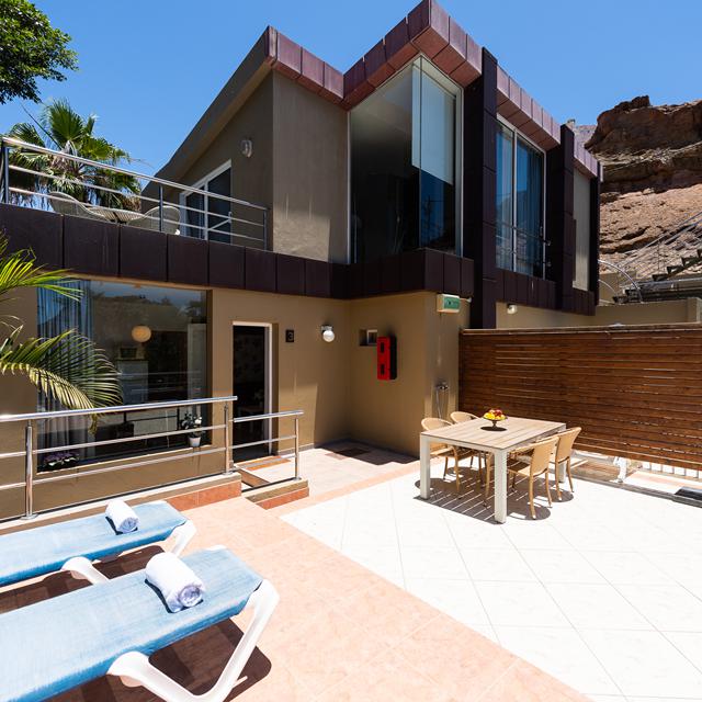 De mooie appartementen van Los Jardines del Cura vind je in Playa del Cura, in het zuidwesten van het Spaanse eiland Gran Canaria. Er zijn slechts acht appartementen en daardoor is het hier heerlijk rustig. Zet je koffer neer en neem een duik in het prachtige zwembad. Als je vanuit het water rondom je heen kijkt, zie je niets anders dan wuivende palmbomen en roodbruine rotspartijen. Ieder appartement is even sfeervol ingericht, met een kleurrijk interieur en een eigen terras waar je van de zon kunt genieten. Wil je even ontsnappen aan de rust? Breng dan een bezoek aan het witte strand van Playa Amadores, de bruisende badplaats Puerto Rico of het schilderachtige vissersdorp Puerto de Mogán. Dit dorp wordt ook wel het ‘Venetië van de Canarische Eilanden’ genoemd. Na een dagje avontuur voelt terugkeren naar je eigen appartement echt als thuiskomen!