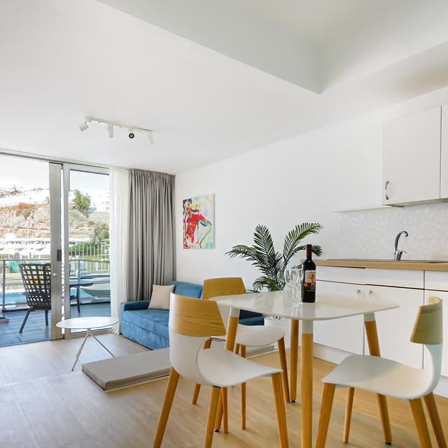 Morasol Suites is een fijn vakantieadres aan de haven van Puerto Rico. Het strand ligt op loopafstand, maar bij het hotel blijven kan ook. Er is namelijk een mooi aangelegd zwembad en een terras waar je de hele dag kunt genieten van het zonnetje op een ligbedje. Voor een verfrissend drankje ga je naar de poolbar en wil je even extra ontspannen: dat kan in de jacuzzi met uitzicht op de haven. Een prachtig gezicht bij zonsondergang! Bovendien zijn de kamers modern ingericht en van alle gemakken voorzien en zit je hier ook nog eens vlak bij het prachtige Playa de Amadores.