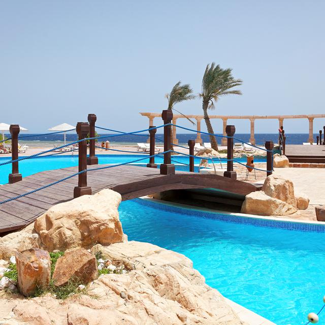 Sheraton Miramar Resort is gebouwd op een droomlocatie in El Gouna: uitgestrekt over negen eilandjes die omringd worden door kristalblauwe lagunes en met elkaar zijn verbonden doormiddel van charmante houtenloopbruggen. Over de eilandjes heen ligt ...