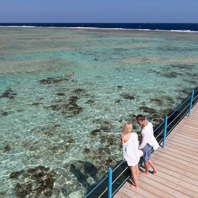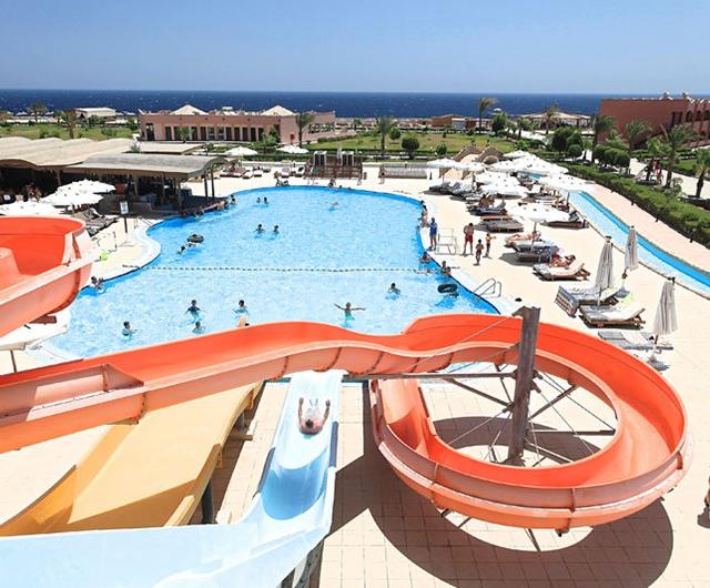 Het hotel ligt op een rustig plekje, tussen de Sahara en de kristalblauwe zee. De omgeving is zo rustig, dat als je goed luistert, je de zee kunt horen ruisen en dat het strand vlak voor de deur, speciaal en alleen geschikt is voor gasten van het hotel. Om in de ontspanningsmodus te blijven, biedt het hotel alle voorzieningen die je nodig hebt voor een relaxte vakantie. Zo vind je er bijvoorbeeld een minisupermarkt, een strandbar, twee restaurants en een souvenirwinkeltje. Schuif gezellig aan in de bedouinentent en proef de Egyptische keuken. Wie zin heeft in wat meer actie kan met een duikbril de zee in of zich wagen aan een potje beachvolley.